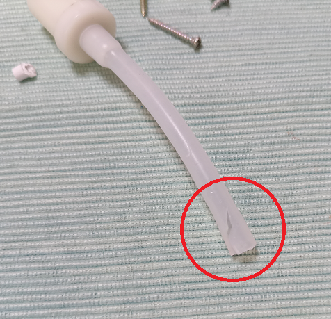 사진상 좌측 긴 호스입구부분이 찢어져 있어서 비누공급이 제대로 안된 것 같네요.
